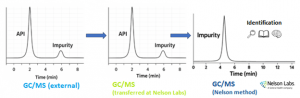Figure 1: From impurity in external GC/MS data to detection and identification at Nelson Labs